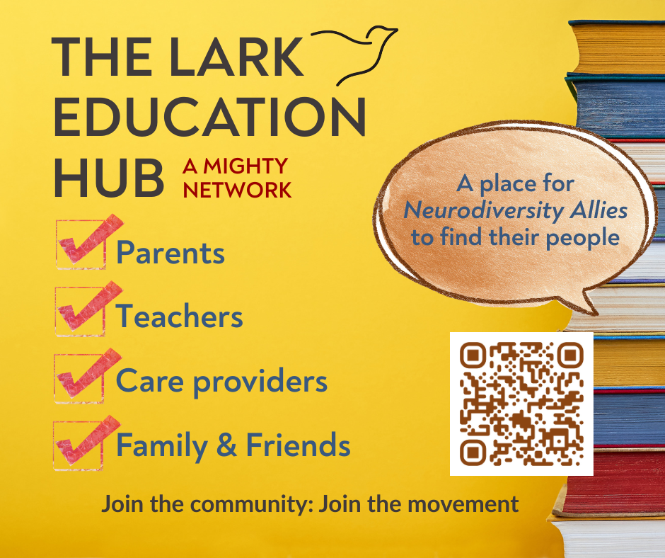 Click here to explore our Mighty Network - The Lark Center Education Hub - where you can connect with other members of our community, find valuable printable resources, and participate in trainings and events hosted by Lark.